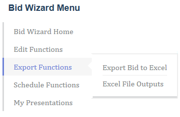 The full Bid Wizard menu will only be available when a processed bid has been opened from the Bid Wizard Home page.
